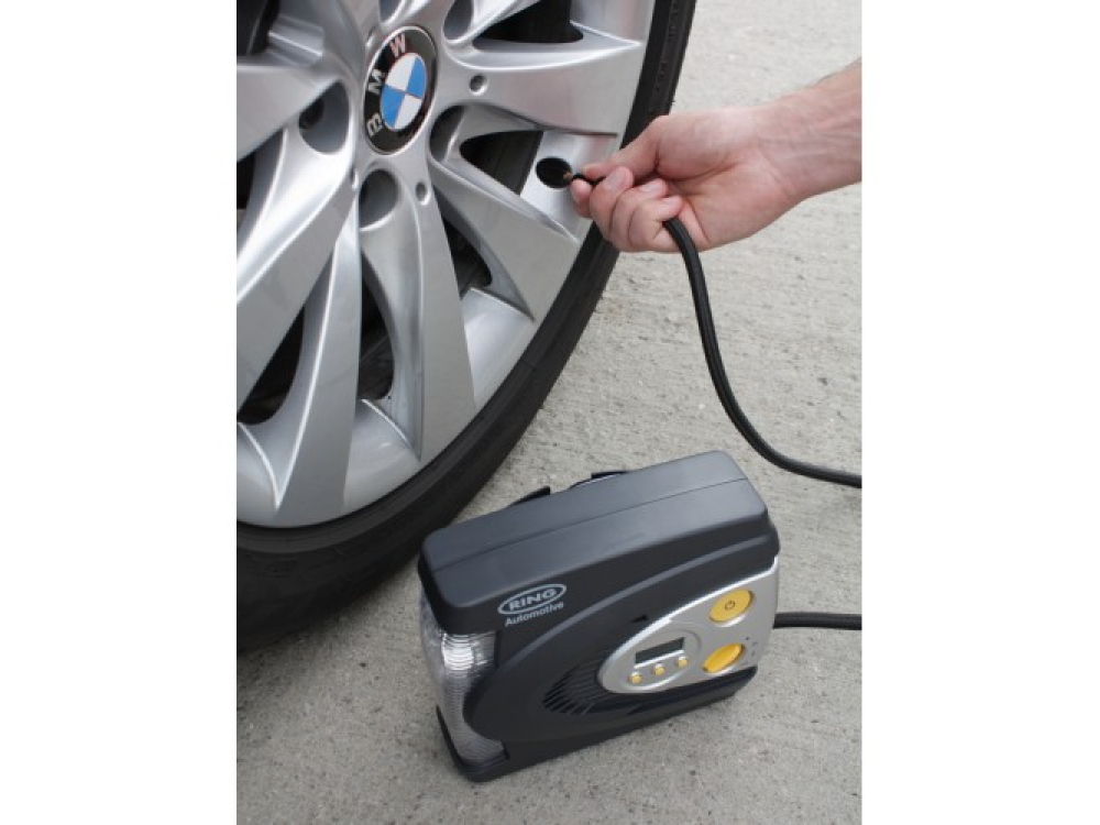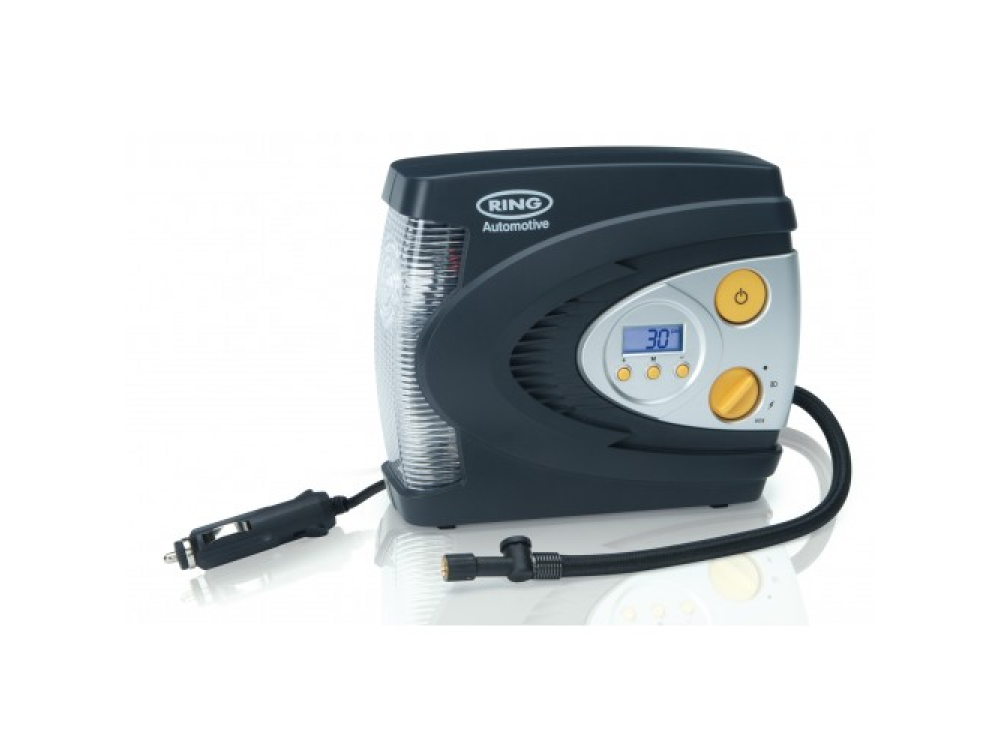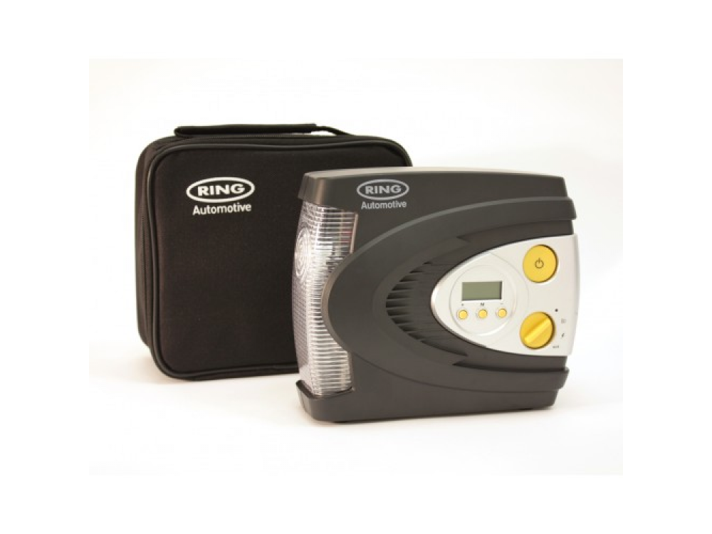 Цифровой надувной шинный компрессор Ring RAC630 12 В. Имеет светодиодный фонарь для подсветки, Красный светодиод для SOS и белый свет для ночного освещения, с режимом работы красного излучения необходим, если вам нужно накачать шину на обочине дороги в темноте, вы можете сделать это безопасно. С функцией автоматического отключения после достижения заданного давления. RAC630 накачивает 13-дюймовую шину от 0 фунтов на квадратный дюйм до 35 фунтов на квадратный дюйм менее чем за 3 минуты, экономя ваше время. В комплекте с трехсекционным адаптером, подходящим для накачивания спортивных мячей и небольших надувных лодок, и удобным футляром для хранения, позволяющим безопасно хранить компрессор в вашем автомобиле когда не используется.