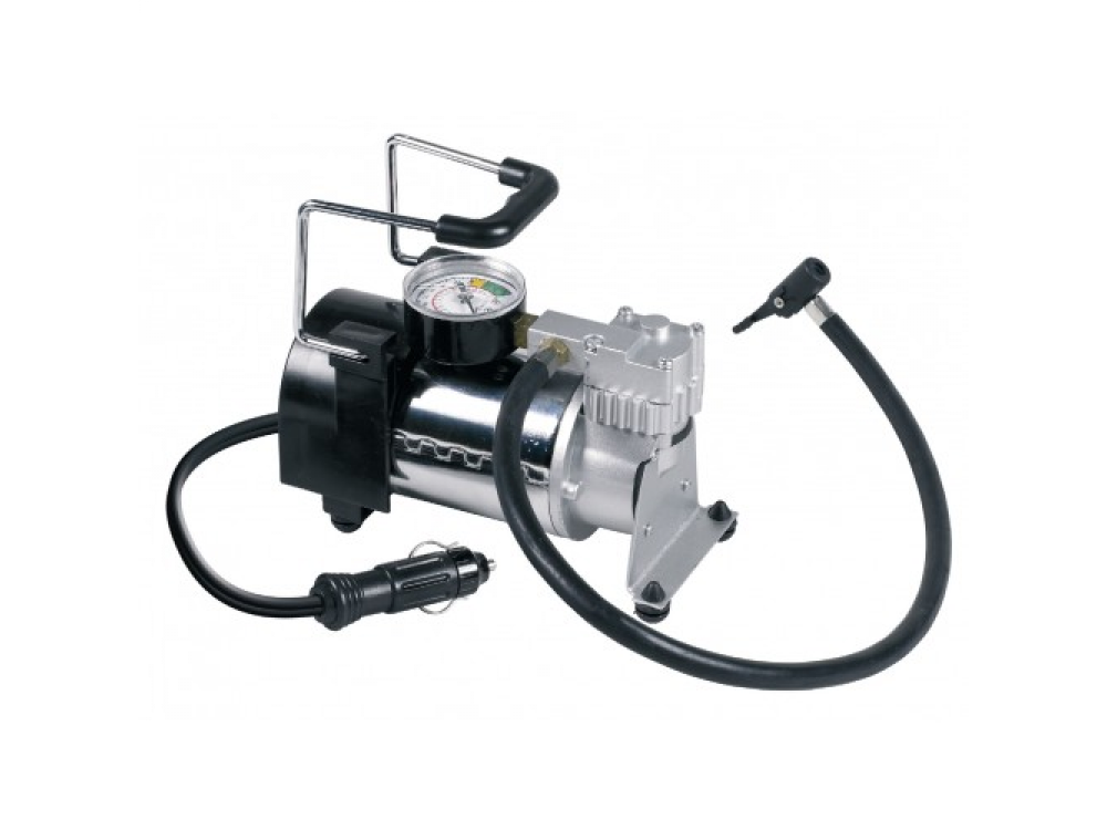 Воздушный компрессор, в прочном металлическим корпусе, идеально подходящий для использования на микроавтобусах, легких коммерческих автомобилях, автомобилях 4x4. Накачивает 13-дюймовую шину с нуля, менее чем за 4 минуты и получает питание непосредственно от автомобильной 12-вольтовой розетки. Прочный металлический корпус и противовибрационные опоры делают этот надежный компрессор идеальным для использования. Поставляется с комплектом переходника клапана и футляром для хранения.