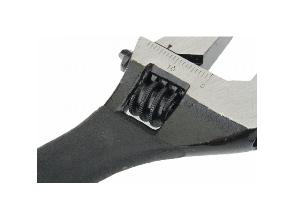 Ключ разводной изготовлен из углеродистой стали и подвергнут селективной закалке. Для разведения губок на точно заданное расстояние на неподвижной губке нанесена градуировка, а на подвижной – точечная риска. Встроенный в тело ключа червячно-винтовой механизм защищен от коррозии. Рожковый разводной ключ предназначен для монтажа и демонтажа резьбовых соединений с широким диапазоном размеров крепежа.