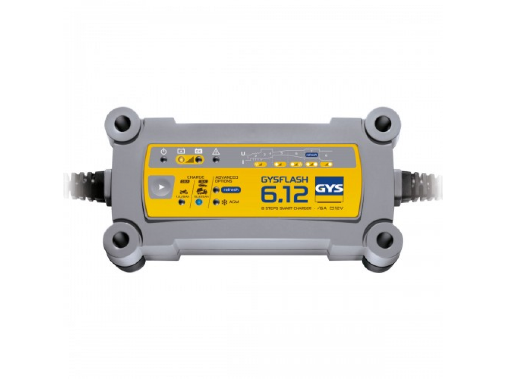 Зарядное устройство GYSflash 6.12 применяется для зарядки АКБ 12В всех типов автомобилей, микроавтобусов, мотоциклов или гидроциклов. GYSflash 6.12 имеет умную кривую зарядки в 8 этапов, обеспечивающую оптимальную зарядку и в 2 раза быстрее, чем традиционное зарядное устройство 6А. Идельаный вариант для легковых автомобилей и мотоциклов - Разработан для аккумуляторов 12 В (кислотно-свинцовых) емкостью от 1.2до 125 Aч, он также позволяет совершать подпитку до 170 Aч. - Универсальное использование благодаря 2 режимам зарядки: - AGM : специфическая зарядка в случае сильных заморозков (ниже 5°C) и для более требовательных аккумуляторов Start & Stop (AGM). - Refresh : Восстанавливает глубоко разряженные аккумуляторы. - Совместимость с CAN BUS для мотоциклов и машин, имеющих гнездо 12В: - зарядка без надзора и в полной безопасности без ключа зажигания (кабель поставляется опционно). - Оптимизированная подпитка: зарядное устройство может оставаться подключенным к АКБ как угодно долго во время зимовки. Функция «Auto Restart» в случае отключения электричества. Аппарат при этом запоминает настройки. Особенности: - Противоискровая защита. Бережет бортовую электронику: защита против коротких замыканий, инверсий полярности и перегрузки. - Автоматическое выключение в случае короткого замыкания или если АКБ отсоединена. - Встроенный температурный датчик, позволяющий избегать перегрева встроенной электроники. - Упрощенный интерфейс, чтобы избежать ошибочных действий. - Компактный дизайн, легкий и переносной. - Соединение с помощью быстросъемных и герметичных коннекторов. - Полностью герметический корпус против пыли и жидкости (IP65). - Возможно стенное крепление. 100% зарядка в 8 этапов: - Анализ. - Восстановление. - Тестирование. - Десульфатация. - Зарядка. - Поглощение. - Восстановление глубоко разряженных АКБ. - Подпитка. Технические характеристики: Наименование Значение Напряжение сети: 220 В - 240 В, 50/60 Hz Максимальный зарядный ток: 6 А Зарядка аккумуляторов 1.2-125 Ач Подпитка аккумуляторов 1.2-170 Ач Напряжение заряда/пуска: 12 В Класс защиты: IP65 Потребляемая мощность: 90 Вт Габаритные размеры: 195х365х70 мм Вес: 0, 77 кг.